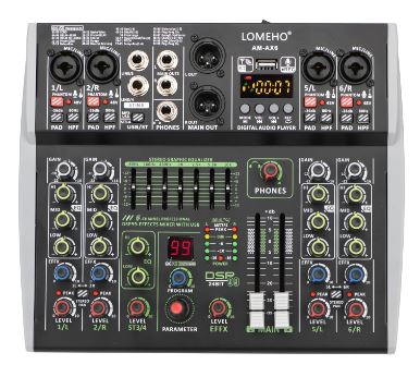 LOMEHO-6 Canal Bluetooth Sound Mixer, Console De Mistura De Áudio, 48V, 99 DSP, Tabela, Profissional, USB, PC, Reproduzir, Gravar, Karaoke, AM-AX6 120,00 € 0,00 €