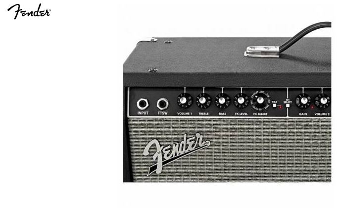 Material: Vinil Black "Bronco" com grelha Silver Grille Cloth. Efeitos: Reverb, Delay/Echo, Chorus, Tremolo, Vibratone. Canais: Canal Blackface Clean; Canal Amp Voice selecionável. Controladores: Gain; Voice; Volume; Treble; Bass; FX Level; FX Select; TAP; Delay Timeb; Tremolo Speed. Potência máxima: 100W. Woofer: 2x Altifalante de 12" Fender® Special Design. Cor: