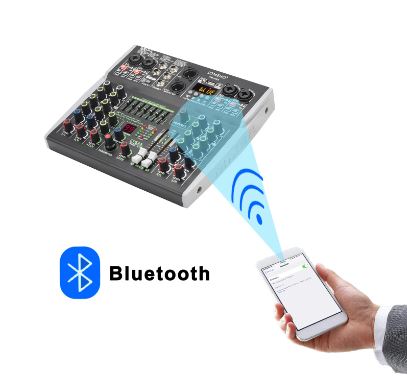Mini 6 Canais Individual 48V Phantom Power Mobile 99 Efeitos DSP Bluetooth USB Computer Play Record Audio Mixer