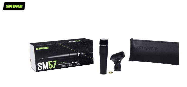 O microfone dinâmico Shure SM57 é um microfone reconhecídissimo para a captação de instrumentos ou amplificadores, mas não só; há grandes vozes que optam por cantar com um SM57 pela característica diferenciada de timbres e resposta de frequência.